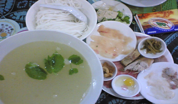 过桥米线起源于云南的蒙自县,关于过桥米线还有一个优美的传说:"过桥米线"始于清朝。相传清光绪年间,云南蒙自县城外有一个南湖,四周有苍松翠竹掩映,风景秀丽,有一道曲折的石桥连通湖心小岛。岛上有几间雅致清静的房屋,是文人学子样研读诗书的好地方。有一位秀才常到岛上读书,家中贤慧的妻子每天都将饭菜做好送到小岛上给丈夫食用。可是这位用功的秀才常因埋头苦读而忘了吃饭,常常是以冷菜冷饭裹腹,这样一来身体日见消瘦,妻子见了很是心疼,于是一天把家中肥母鸡杀了,炖熟后用罐子装着,送到了岛上给丈夫食用。可是这次用功的丈夫又忘了吃饭,当妻子回来收拾碗筷时,饭菜还未动过,妻子看着丈夫用功的样子无心埋怨,准备把饭菜拿回家后热一热再送来,可是当她摸到盛鸡肉的罐时,觉得还是烫乎乎的,揭开盖子来看,汤上盖着的一层厚厚的鸡油把热气保护住了,起到了保温的作用,用勺舀汤一尝,美味不减。从此以后,聪明的妻子就常有鸡汤加米线相搭配给丈夫食用。这事逐渐传为美谈,人们纷纷仿效这种制作方法制作鸡汤米线,因为这位贤能的妻子给丈夫送食物时要经过一首桥,人们又把这种食品,称之为“过桥米线”。