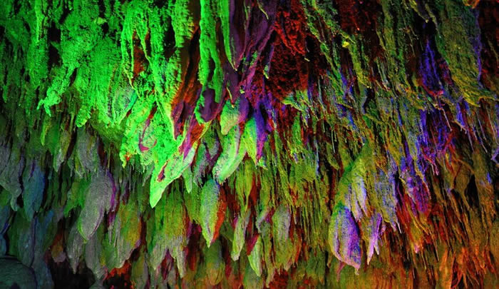 蝙蝠洞——因此洞在开发前洞内有数以万计的蝙蝠栖息而得名,由于溶洞开发后,游人来得多,蝙蝠们也就搬家了,现在洞名也只是徒有虚名了。该洞主要景观就是一片倒挂的钟乳石——地下倒石林景观。