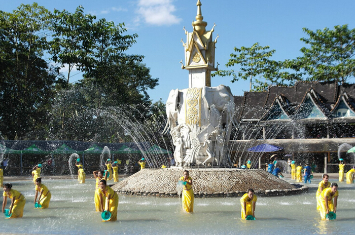 傣族园,全称西双版纳傣族园。位于中国云南省西双版纳橄榄坝。景区内有我国保存最完好的五个傣族自然村寨,占地面积3.36平方公里,预计投资1.5亿元人民币,分三期完成。第一期投资4200万元,已完成土地征用,道路修建,旅游购物区地下水管、电线的埋设等基础设施建设,建成了旅游景区大门楼、迎宾广场、老景区的包装、村寨旅游线路、江边活动区、旅游购物区、烧烤场、泼水广场、大型露天剧场 。已于1999年8月1日开门迎客。傣族园二期工程预计投资6000万元,将建成民俗旅游度假区,大型游乐园。