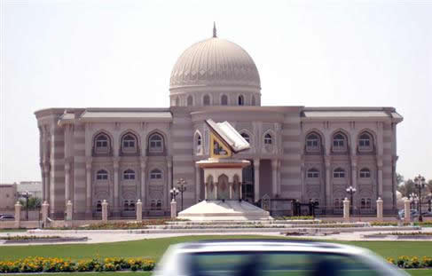 沙迦是中东地区的文化名称,而古兰经纪念碑广场则是沙迦的文化中心。在沙迦古兰经纪念碑广场的街心花园中,耸立着巨大的一个翻开着的一本书的雕塑,那便是古兰经纪念碑。据悉,这是为了纪念阿联酋7个酋长国当年建国时签署联合协议而建造的一个纪念建筑物。在它的后方那个白色的建筑,是酋长办公室,左边是皇家礼拜清真寺,右边是文化宫,另一边则是大会堂。