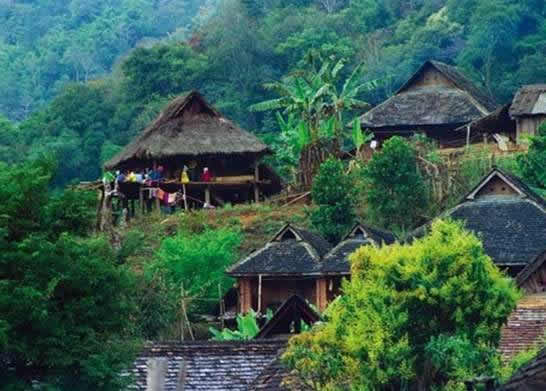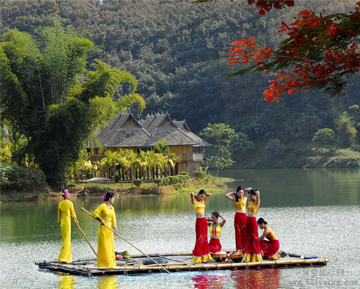 傣族村寨四周多种植椰子、香蕉、竹林等果木,处处部部葱葱,一派亚热带的风光和异国情调。