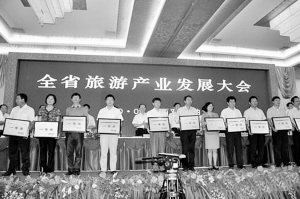 获奖州市相关负责人上台领取奖牌 云南作为旅游大省,独特的旅游资源让很多省份羡慕不已,那么怎样让一个旅游大省向旅游强省跨越呢?昨天召开的全省旅游产业发展大会上,省委书记、省人大常委会主任白恩培给出了时间表:到2020年,旅游业占全省生产总值的比重达10%以上,实现由旅游大省向旅游经济...