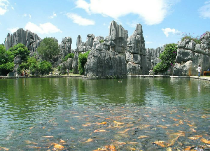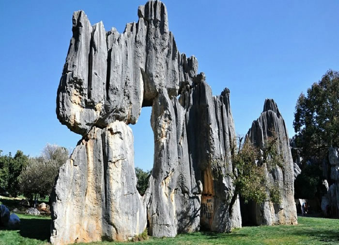 神奇的喀斯特地形石林位于云南省昆明石林彝族自治县境内,石林公园旧时一直被称为李子菁石林,距昆明86公里,包括大石林、小石林、外石林,无数的石径、石廊、石门、石洞、石桥,贯串其间,将它连成一个有机的整体。以往人们口中所说的云南石林、路南石林指的就是这一带。在路南石林中,大石林是开发得最早的。