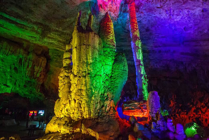 蝙蝠洞——因此洞在开发前洞内有数以万计的蝙蝠栖息而得名,由于溶洞开发后,游人来得多,蝙蝠们也就搬家了,现在洞名也只是徒有虚名了。该洞主要景观就是一片倒挂的钟乳石——地下倒石林景观。