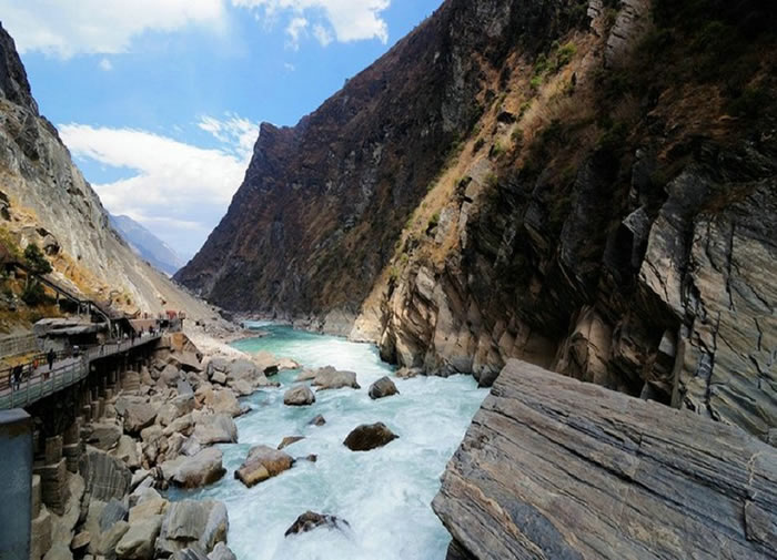 “虎跳峡天下险”,但这个“险”中却蕴藏着夺人心魄的壮美,正是这种“险”,吸引着国内外无数游客到此寻幽探险。