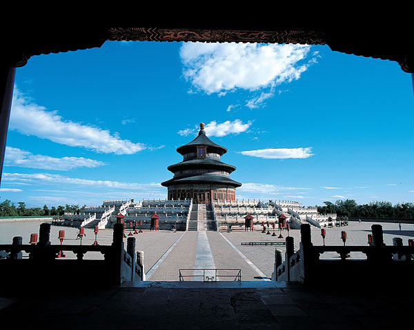 天坛,在北京市南部,东城区永定门内大街东侧。占地约273万平方米。天坛始建于明永乐十八年(1420年),清乾隆、光绪时曾重修改建。为明、清两代帝王祭祀皇天、祈五谷丰登之场所。天坛是圜丘、祈谷两坛的总称,有坛墙两重,形成内外坛,坛墙南方北圆,象征天圆地方。主要建筑在内坛,圜丘坛在南、祈谷坛在北,二坛同在一条南北轴线上,中间有墙相隔。圜丘坛内主要建筑有圜丘坛、皇穹宇等等,祈谷坛内主要建筑有祈年殿、皇乾殿、祈年门等。